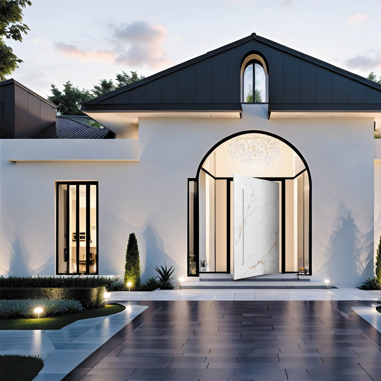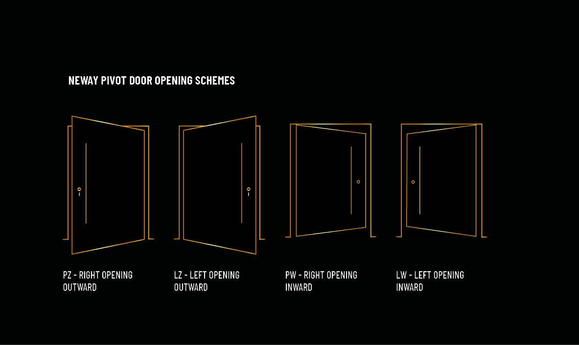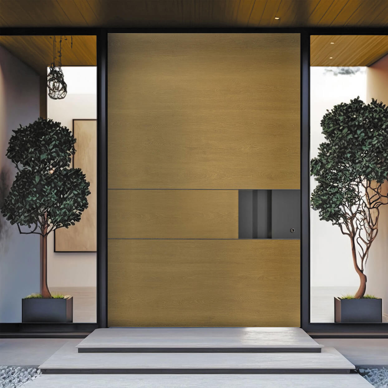 Pivot doors are a bold alternative to traditional hinged doors. Their rotation system is based on a pivot point at the top and bottom of the door panel, eliminating the need for side hinges and allowing for much wider, taller openings.